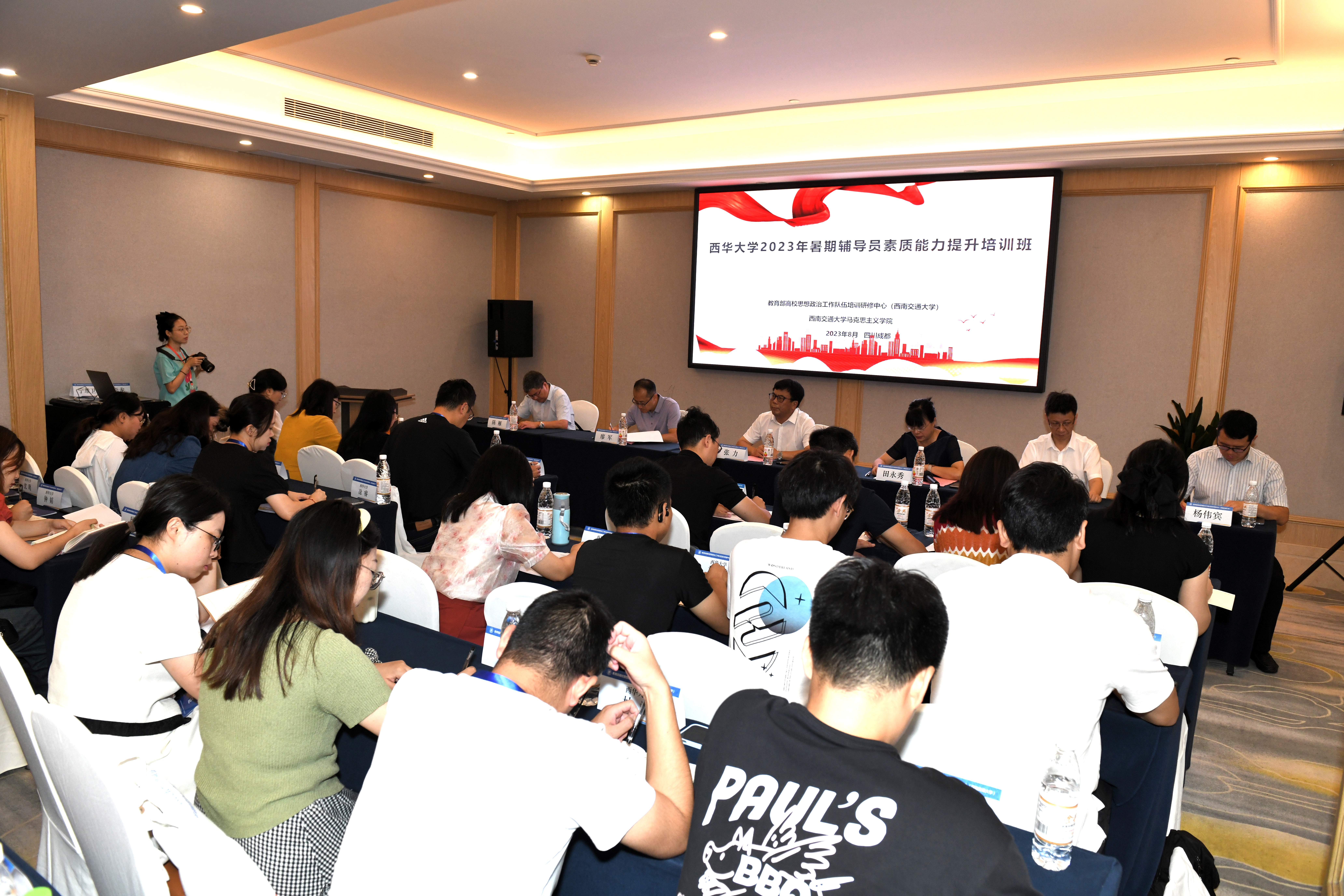 2023年8月21日早上9:30,bevictor伟德2023年暑期辅导员素质能力提升培训班在教育部高校思想政治工作队伍培训研修中心(西南交通大学)举行了开班仪式。bevictor伟德党委副书记张力、西南交通大学马克思主义学院党委书记廖军、西南交通大学马克思主义学院执行院长田永秀出席了开班仪式并致辞。