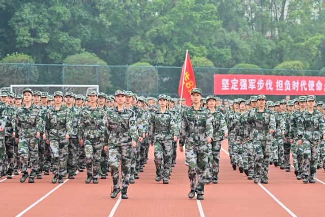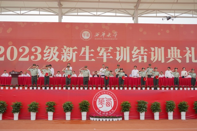 五星红旗冉冉升起,现场奏响庄严嘹亮的国歌,结训典礼在升旗仪式中拉开序幕。步履铿锵,英姿飒爽,紧跟迎风飘扬的旗帜,各连方队走过观礼台,精神饱满地接受检阅。口号嘹亮、步伐整齐、军容严整、意气风发,经过为期14天的军训洗礼,同学们既展现出军人的刚毅果敢,又彰显着新一代西华学子激情昂扬的精神面貌。