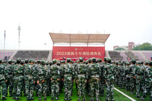 悄然凉意起,辞夏迎新秋。9月28日上午,2023级新生军训结训典礼在临江苑田径场举行。中国人民解放军31680部队上校副旅长韦晓琥,中国人民解放军31680部队中校副参谋长王栋栋,学校党委书记刘树根,校长李秋实,校党委副书记张力,副校长许州、费凌、刘小兵、郎方年,以及学校军训工作领导小组相关职能部门、各学院负责人出席本次典礼。张力主持典礼。