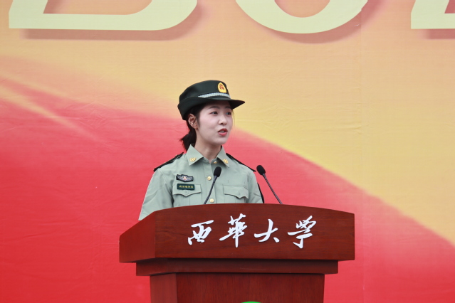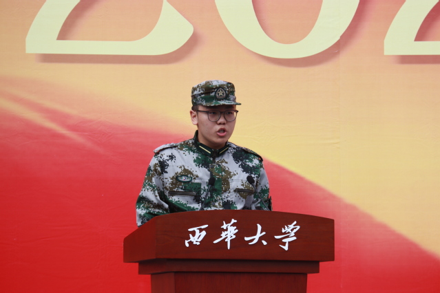 “顺境固然人人期望,但逆境之奋进则更让人斗志昂扬。”政治指导员代表机械工程学院黄霭琳老师表示学生应该相互团结,在军训过程中形成珍贵的团体意识与坚强意志,鼓励新生在大学伊始学会独立面对人生中的艰难困苦,并代表宜宾校区全体政治指导员作出郑重承诺:做好军训宣传教育,激发学生参训热情,严格遵守军训纪律,争做参训学生榜样,立足本职岗位工作,做好军训后勤保障。
