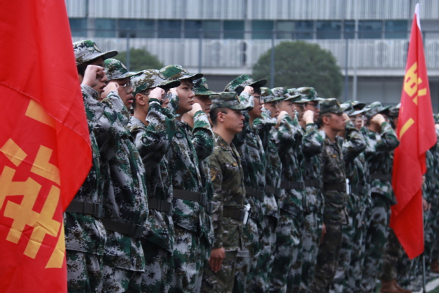 仪式的最后,汽车与交通学院李厚勋同学带领全体参训学生庄严宣誓,学生列队有序离场。