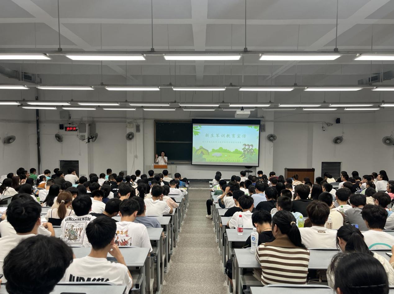 吹响军训号角,开启崭新征程。军训是高等院校人才培养与教学内容的重要组成部分,更是当代大学生不可或缺的一次身心历练。为顺利迎接军训,鼓舞学生士气,强调军训期间注意事项,更好地维护军训期间的纪律。9月12日晚19:00,计算机与软件工程学院于6B-308召开2023级新生军训动员大会,学院310余名新生参会。大会由新生辅导员韩静老师主持。