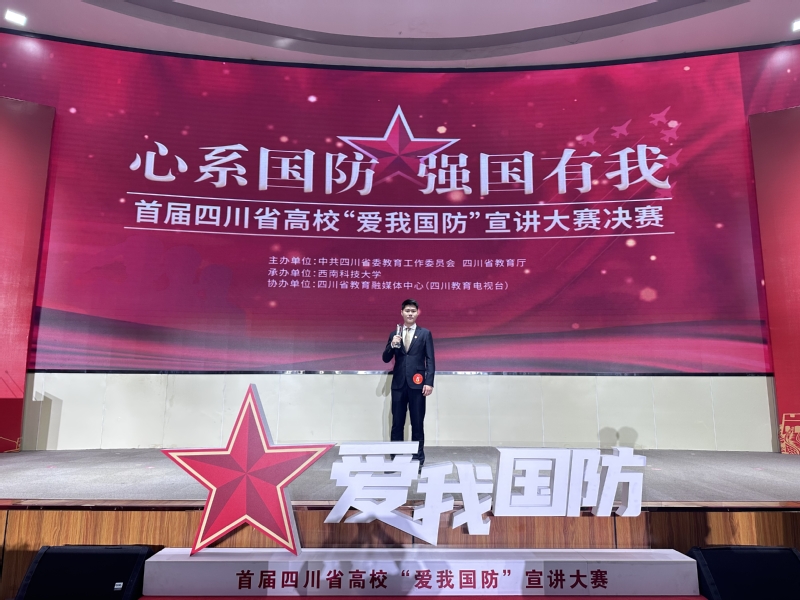4月29日,由省委教育工委、教育厅主办的首届四川省高校“爱我国防”宣讲大赛决赛在西南科技大学举行。14位决赛选手紧扣时代主旋律、紧贴教育系统实践,讲述青年师生关心国防、热爱国防、建设国防、保卫国防的精彩故事,展现高校国防教育丰硕成果。我校外国语学院辅导员齐佳一在决赛中获特等奖。