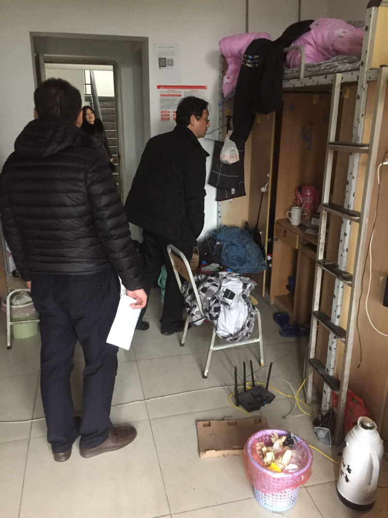 为深入贯彻学校《关于开展全校期末安全大检查的通知》要求,进一步做好期末和寒假期间学生宿舍安全工作,学生工作部(处)下发了《关于组织开展期末学生公寓安全大检查的通知》的通知,要求各学院按照学校要求自查自纠,做好学生安全工作。1月9日下午,学生工作部(处)、后勤服务总公司组成四个检查小组,深入学生公寓进行宿舍安全大检查。