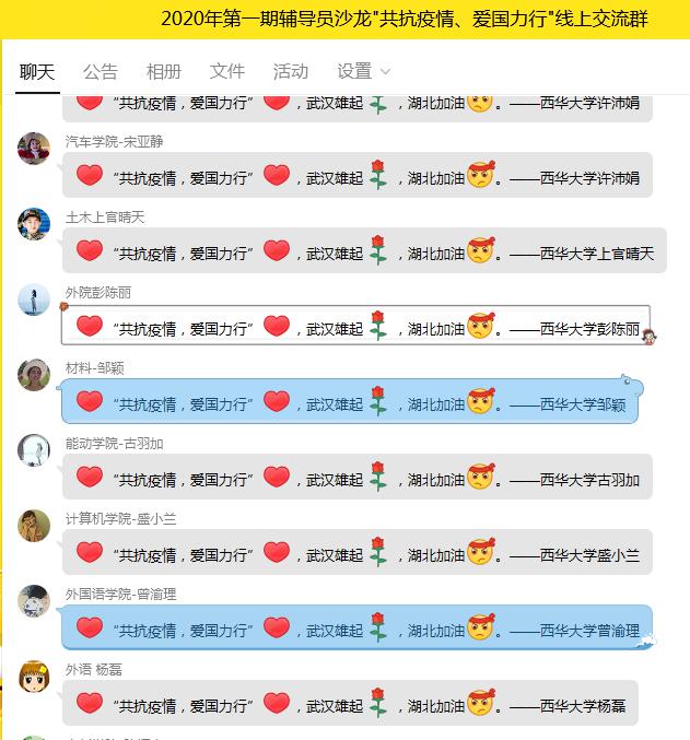 电气与电子信息学院辅导员龚翠艳:“抗疫”过程中涌现出的大量感人事迹都是对以爱国主义为核心的民族精神、中国特色社会主义制度优越性的生动诠释。辅导员要做好宣传,为学生上好抗击疫情的爱国主义教育课。同时,由这次疫情带来的延迟开学更加凸显了网络思想政治教育工作的重要性。以此次“宅家上学”为契机,我们应该从中注意掌握网络思政的工作规律,创新工作方式方法,让网络成为工作的更大助力,为学生提供更好的思想引领和服务。