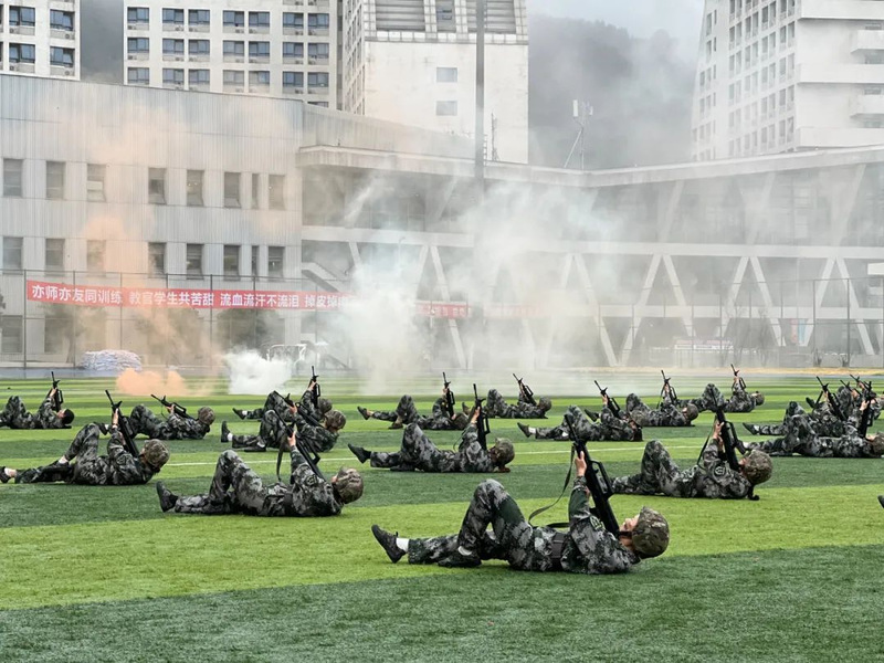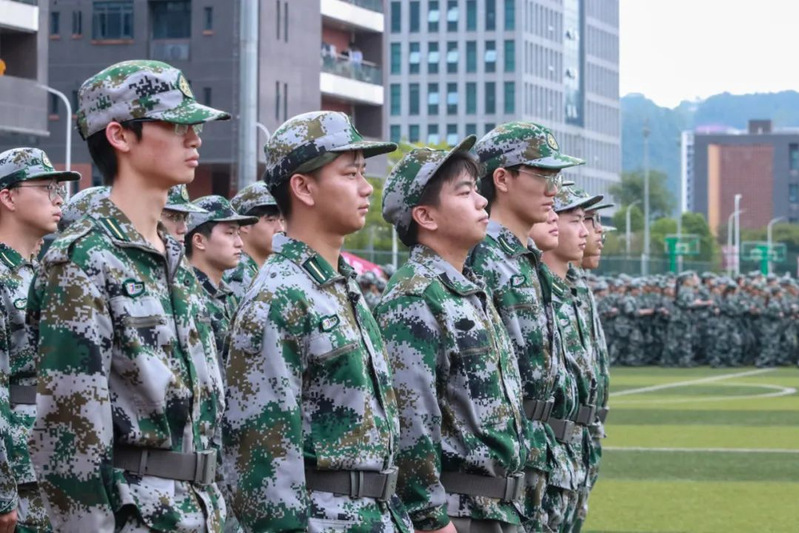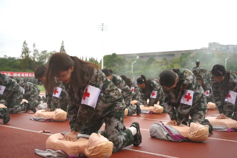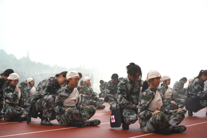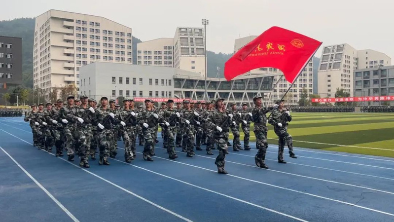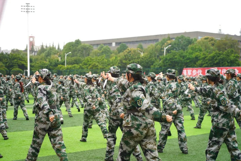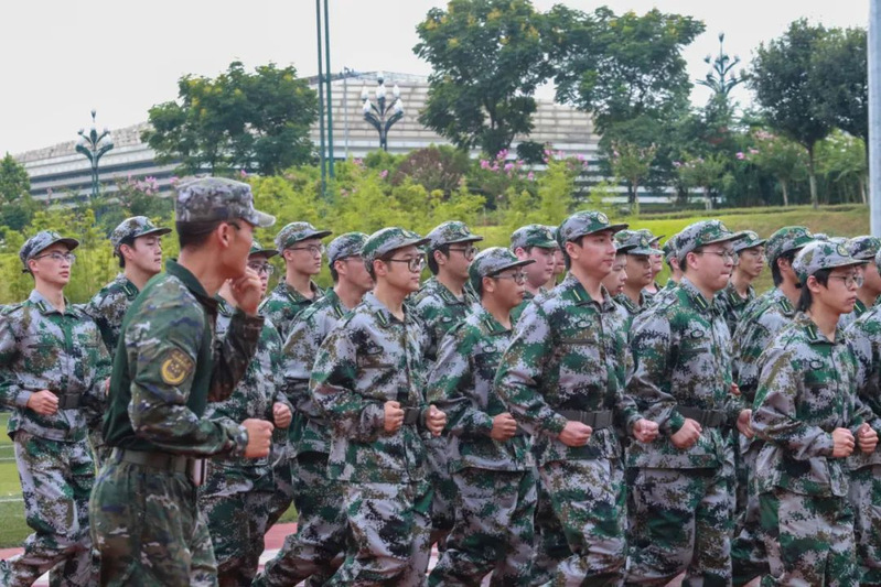本次军训采用全场景作训,拓展训练科目,新增模拟射击系统、徒步拉练等项目,学生沉浸式体验军营生活;瞄准新时代大学生成长规律和思想特点,紧盯思想政治教育现实需求,将应急救护教学、军事理论教学、国防知识教育、整理内务等内容纳入新生军训科目,并开展反诈主题教育及形式多样的国防教育活动,在军训过程中向学子普及国防知识、培塑爱国情怀,凝聚起关心国防、奋斗强国的青春力量。