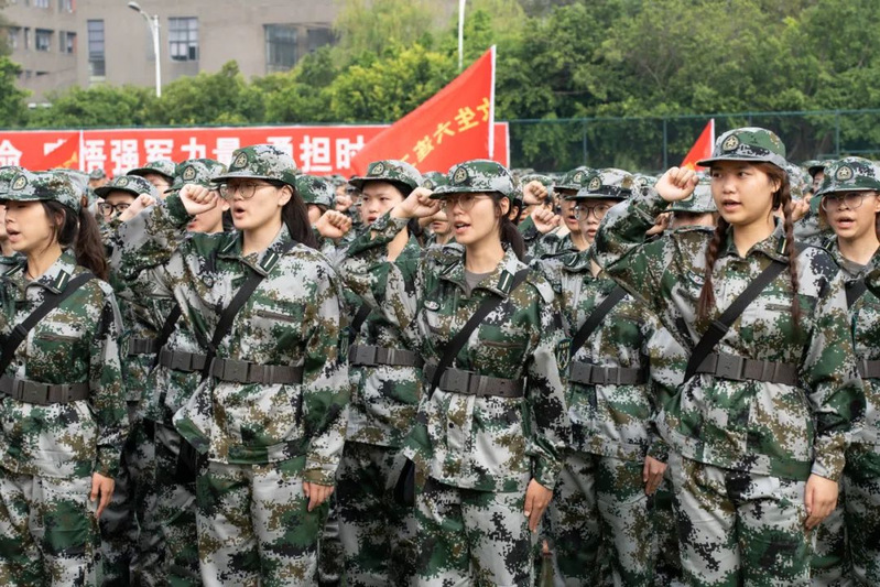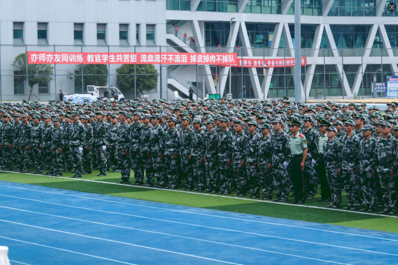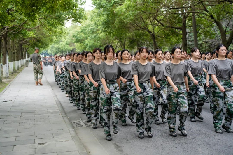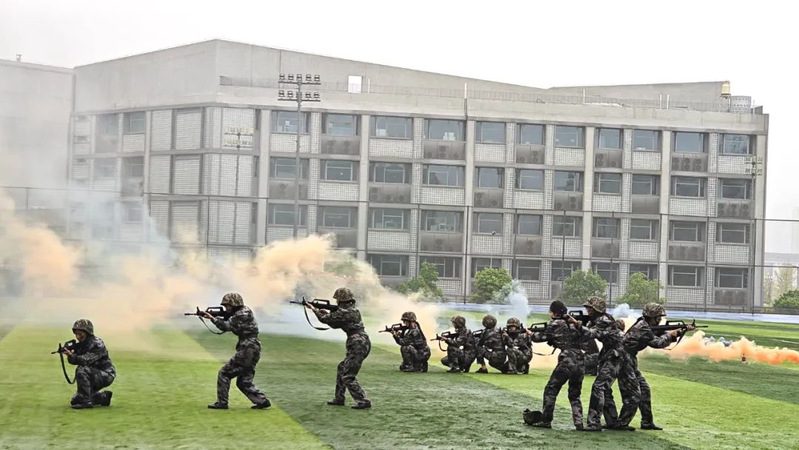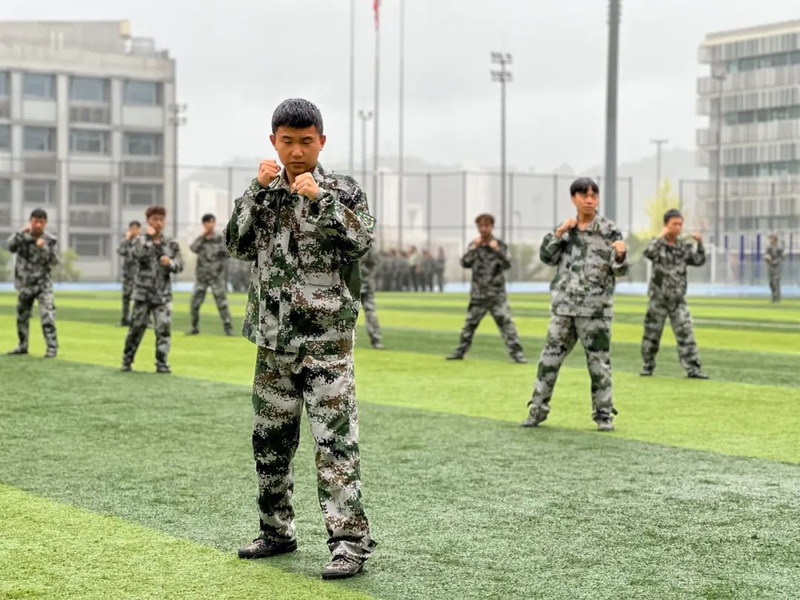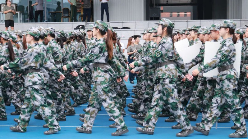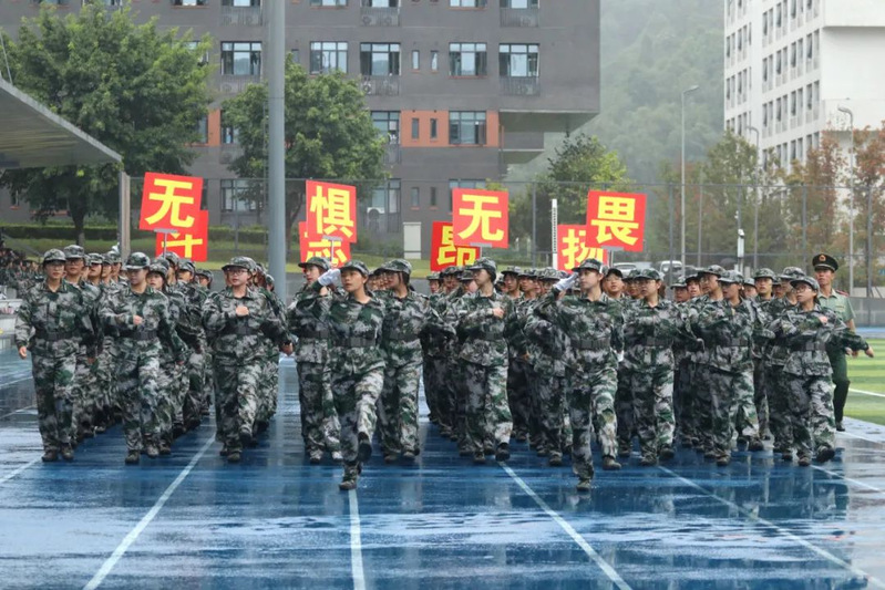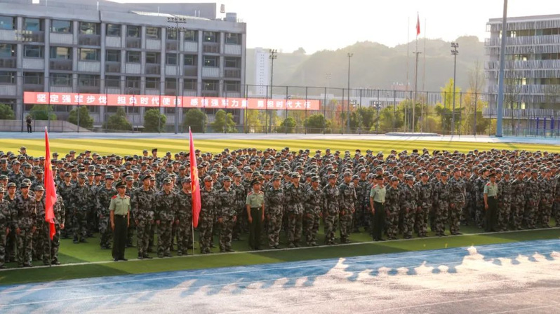 本次军训采用全场景作训,拓展训练科目,新增模拟射击系统、徒步拉练等项目,学生沉浸式体验军营生活;瞄准新时代大学生成长规律和思想特点,紧盯思想政治教育现实需求,将应急救护教学、军事理论教学、国防知识教育、整理内务等内容纳入新生军训科目,并开展反诈主题教育及形式多样的国防教育活动,在军训过程中向学子普及国防知识、培塑爱国情怀,凝聚起关心国防、奋斗强国的青春力量。