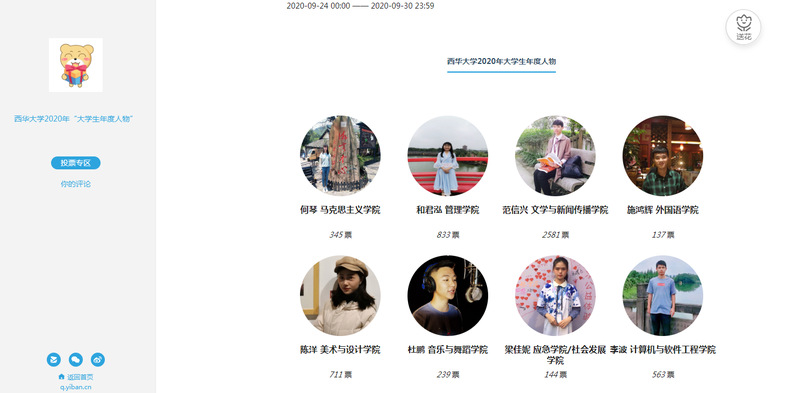 为更好地宣传“bevictor伟德2020年大学生年度人物”学生先进事迹,扩大其影响力,9月24日—9月30日,学校利用易班平台开展了网络投票,参与投票人数近四千人次,投票数近两万票。十月下旬起,学校将利用新媒体网络平台开展“bevictor伟德2020年大学生年度人物”风采展示主题活动,充分展示获奖学生先进事迹。