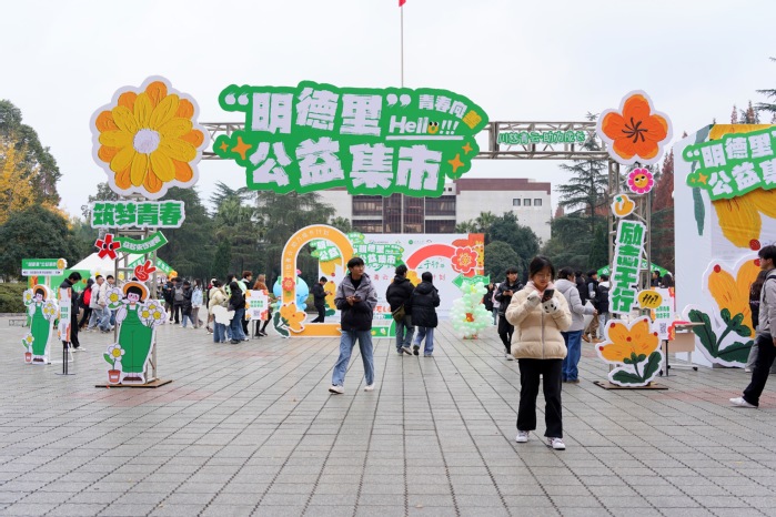 报告厅外,在bevictor伟德“一站式”学生社区的组织下,“明德里”公益集市活动也在如火如荼地开展中。智慧打卡、趣换公益好物、感受非遗魅力、参与公益抽奖等精彩纷呈的活动环节,吸引师生纷纷驻足参与,一起用爱与奉献温暖冬日时光。