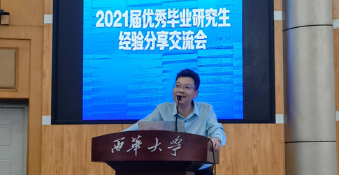 分享会第一项,由学生工作部副部长万志昂老师致辞。万志昂副部长鼓励研究生们多去读书,在如今快节奏的社会生活中,从读书中领悟身为研究者的状态尤为重要。万副部长强调研究生一定要拒绝功利,拒绝浮躁,唯有谨慎、脚踏实地的研究精神,方能取得理想成绩。