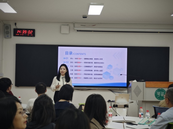 “伍老师,您在辅导员科研论文方面有哪些经验与建议?”“生涯工作室建设也需要强大的学生团队,学生团队也具有流动性,您是如何管理学生团队的呢?”“视频剪辑方面难度大吗?一条高质量视频需要花多少时间完成呢?” ……互动交流环节气氛热烈,各学院辅导员结合自身工作困惑积极提问,伍晓芸老师一一耐心解答,