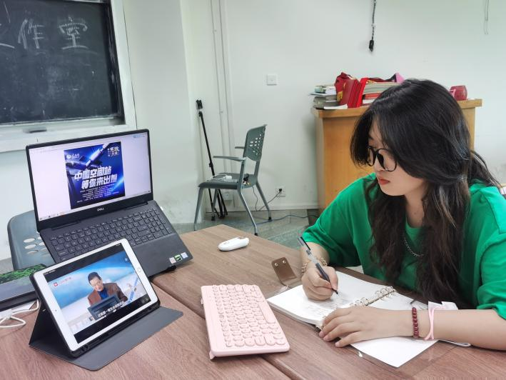 师生们通过手机、电脑等媒介在4月23日下午14:00通过“人民网+”“人民网教育”“咪咕视频”等平台观看航天精神思政大课。校本部、彭州校区、宜宾校区的师生通过集中收看和自行收看的方式进行。各学院、各班级结合实际情况,以寝室、班级和党支部为单位集中学习等方式参与学习。学生学习积极性高,热情足,在校学生三万余人参与在线观看,并结合个人学习、观看感受畅谈所得所感,积极开展思想交流,热烈讨论,撰写心得体会深化学习效果,营造了良好氛围。