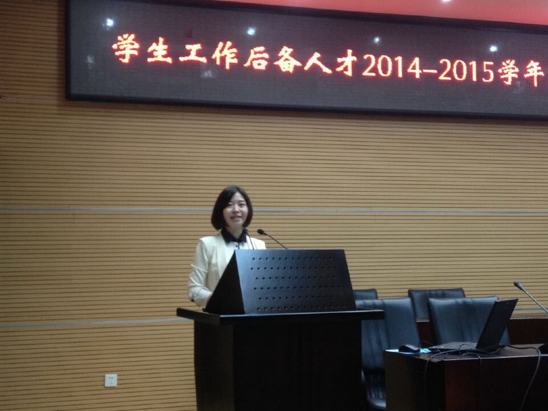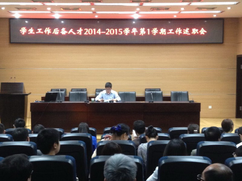 会上,来自建设与管理工程学院的学生工作后备人才张志盈第一个上台述职。她结合学院实际,从学生思想政治教育、日常事务管理、班级管理、学风建设以及个人修养等方面分享了她一学期来的工作和收获,她谈道:“在工作中不仅提高了自身素质和技能,更是让自己喜欢上了辅导员这份工作,愿意把这份工作当成事业来做,把工作做得更细致、更深入。”之后,每位后备人才都通过陈述、展示PPT的方式对自己在2014-2015学年第一学期的工作进行了汇报。
