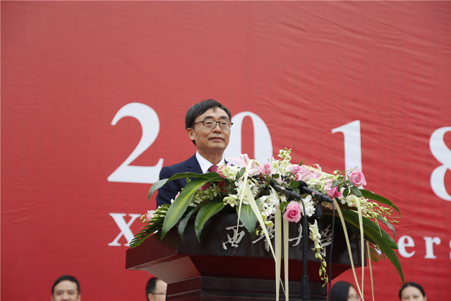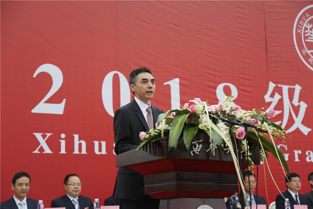校长刘清友作了题为《求真求是 明德修身 追求卓越 做新时代的西华人》的讲话。刘校长以“求是明德卓越”的西华校训为主题寄语新同学:一要求真求是,以奋斗之姿成为未来的人才。刘校长以中国工程院院士、我校79级校友王华明扎根科研的事迹为例,倡议大家以奋斗之姿,以求真求是的科学精神,做求真求是的西华人,赢得属于自己的机会;二要明德修身,以赤子之心拥抱未来的世界。刘校长从我校原建筑与土木工程学院93级校友、抗震救灾先进个人肖代全奉献和回馈社会的事迹出发,希望每一位西华学子可以守住初心,明德修身,做正直的人,做知感恩懂回报的人;三要追求卓越,以青春之我迎接未来的挑战,刘校长号召大家要学习为三峡大坝装上“中国心”的水轮机专家、我校流体机械专业79级校友石清华的奋斗精神,追求卓越,不断突破“小我”,在与国家共奋进的道路上,成就真正的“大我”。