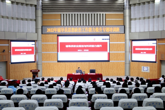 李秋实结合自身科研经历,围绕“职业规划”与“科研能力提升”两个方面,就新形势下辅导员如何进行职业生涯规划和科研能力提升作了讲解。他指出,辅导员队伍要明确自身角色定位,深刻认识到辅导员是一支最讲政治、最能战斗、最能托底、最善学习的人才队伍。辅导员要将个人职业生涯与国家、社会、学校的发展紧密相连。