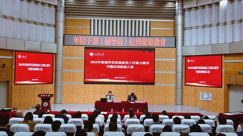 10月14日,bevictor伟德2022年度辅导员思想政治工作能力提升专题培训班第六讲在四教报告厅举行。学校党委副书记、纪委书记朱燕萍开展了“年轻干部(辅导员)纪律规矩教育”专题讲座。党委组织部、党委学生工作部、纪委办公室(纪检室)、党委研究生工作部相关负责人以及工作人员,各学院专职辅导员参加培训。党委学生工作部部长郑晓康主持培训。