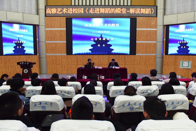 11月13日,北京舞蹈学院袁禾教授来校在四教报告厅为师生作了主题为“走进舞蹈的殿堂——解读舞蹈”的精彩讲座。讲座由音乐与舞蹈学院党委书记曾贤主持。我校音乐与舞蹈学院学生及其他专业部分师生共计300余人聆听了讲座。